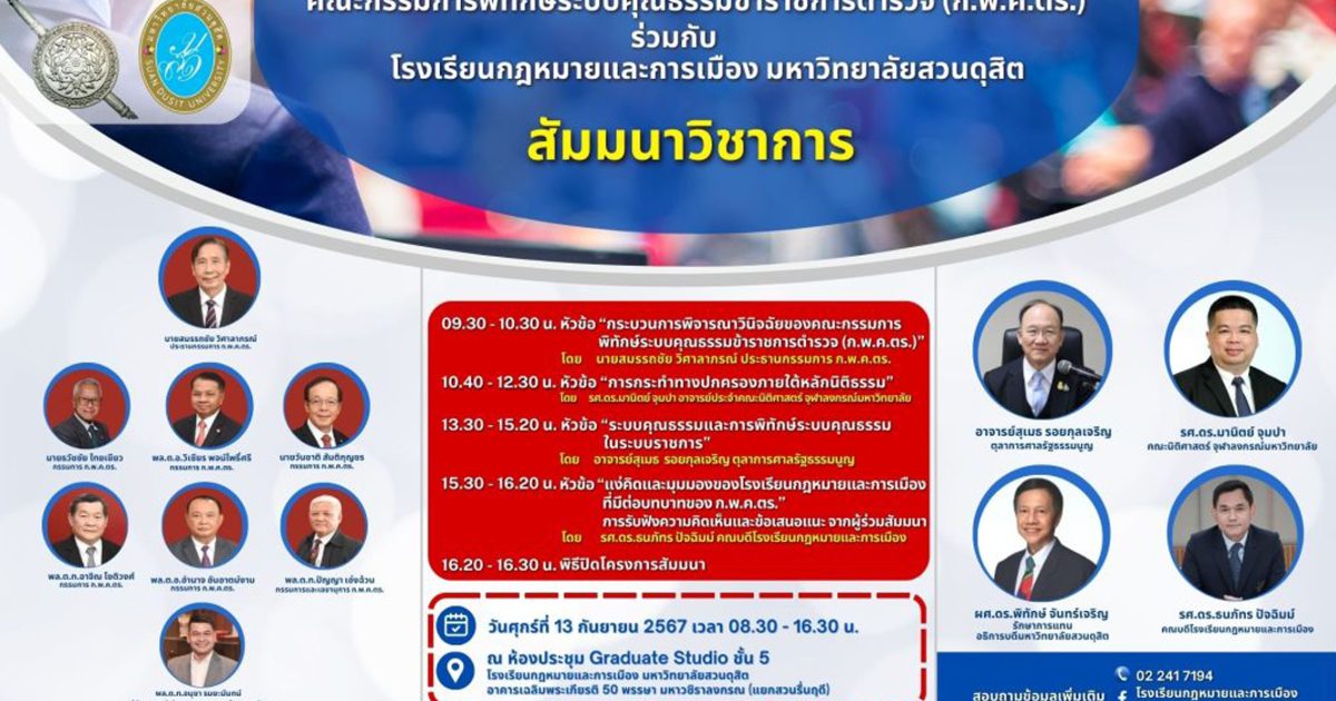 และการเมือง มหาวิทยาลัยสวนดุสิต จัดสัมมนาวิชาการ หัวข้อ กระบวนการพิจารณาวินิจฉัย